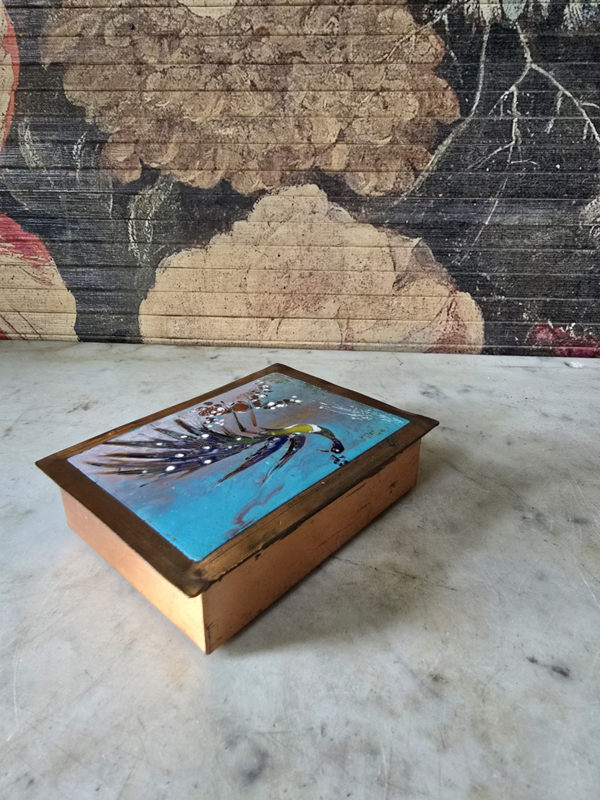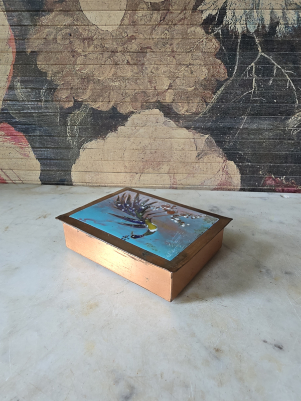 Geëmailleerd koperen doosje kraanvogel