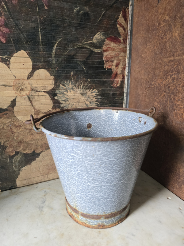 Grijs gewolkte emaille groenten emmer
