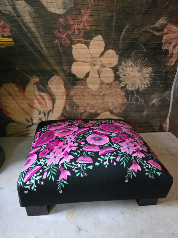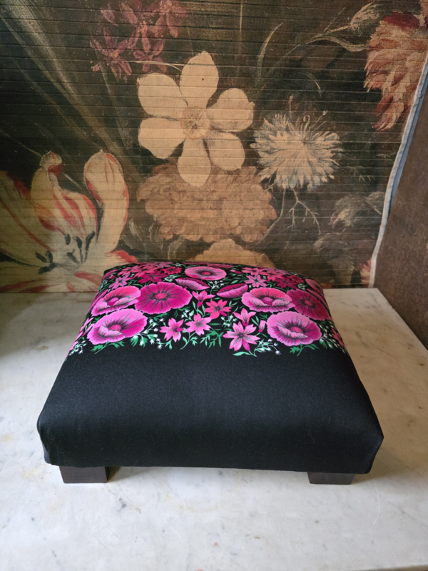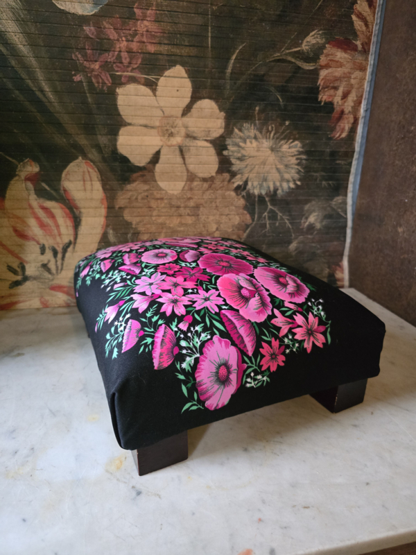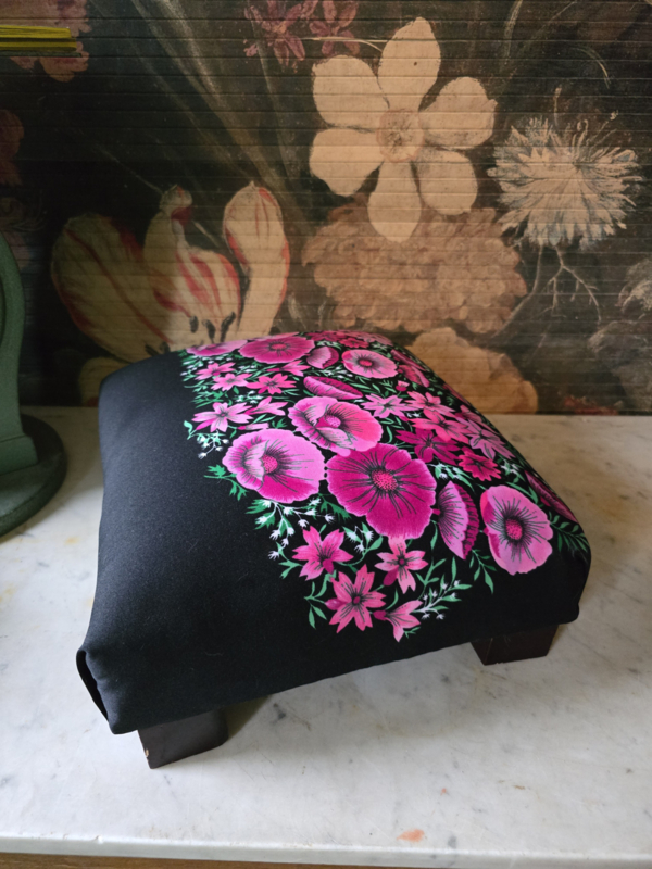 Voetenbankje roze papavers