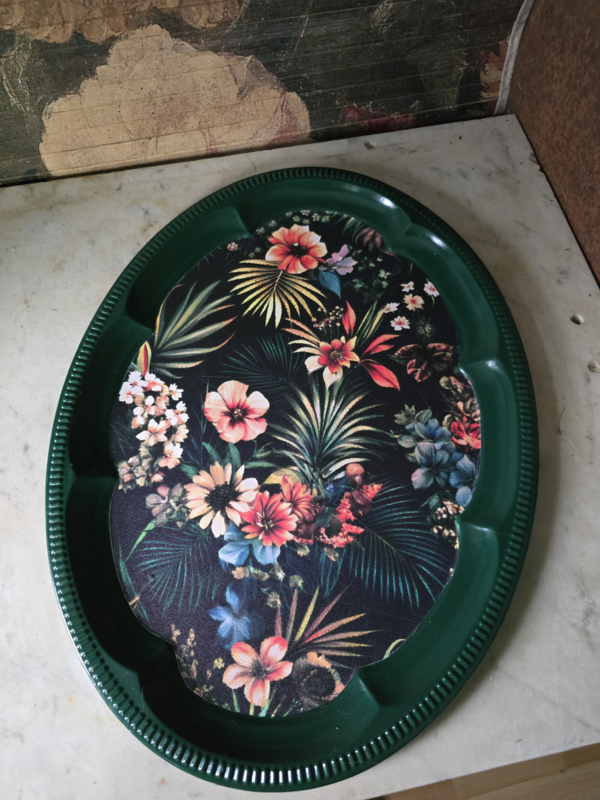 Ovaal metalen dienblad bloemen paradijs nr2