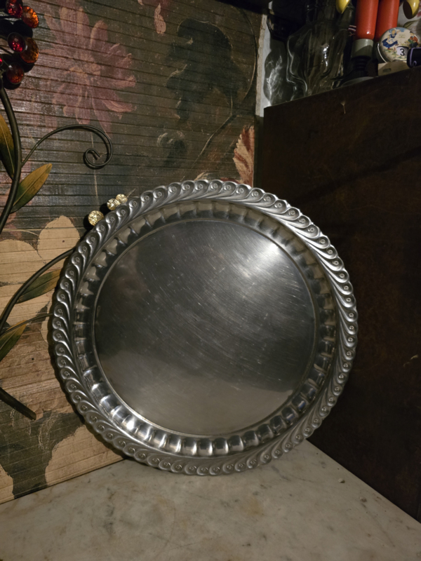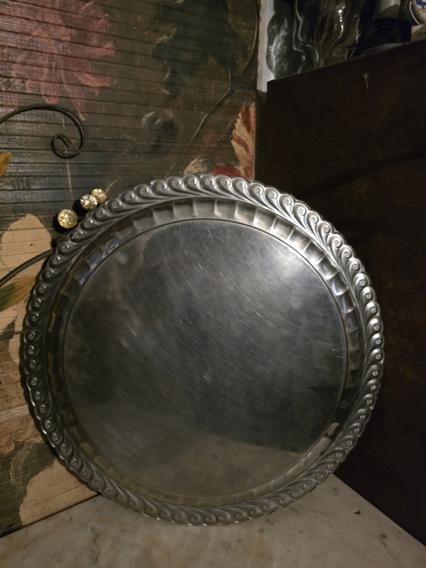 Ronde bewerkte metalen dienblad