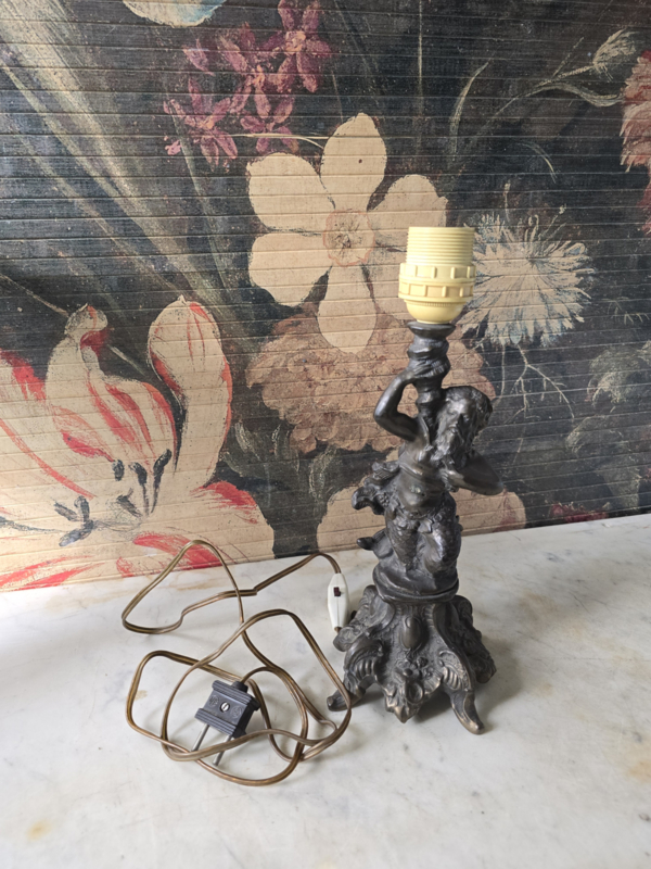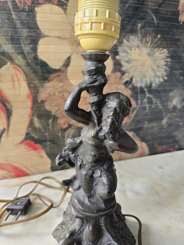Antiek messing lampenvoet Neptunus