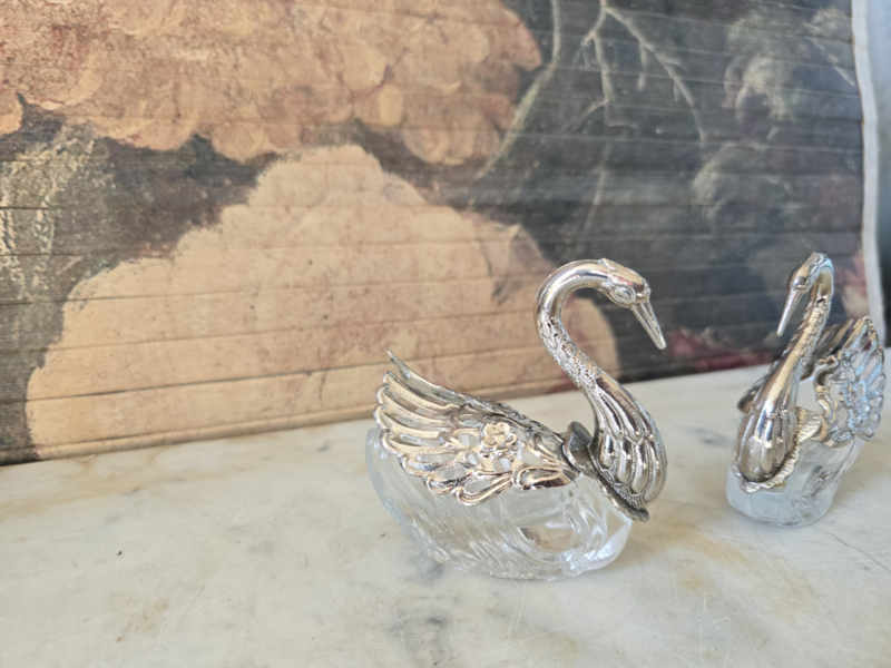 Verzilverd zwaantje met kristallen schaaltje