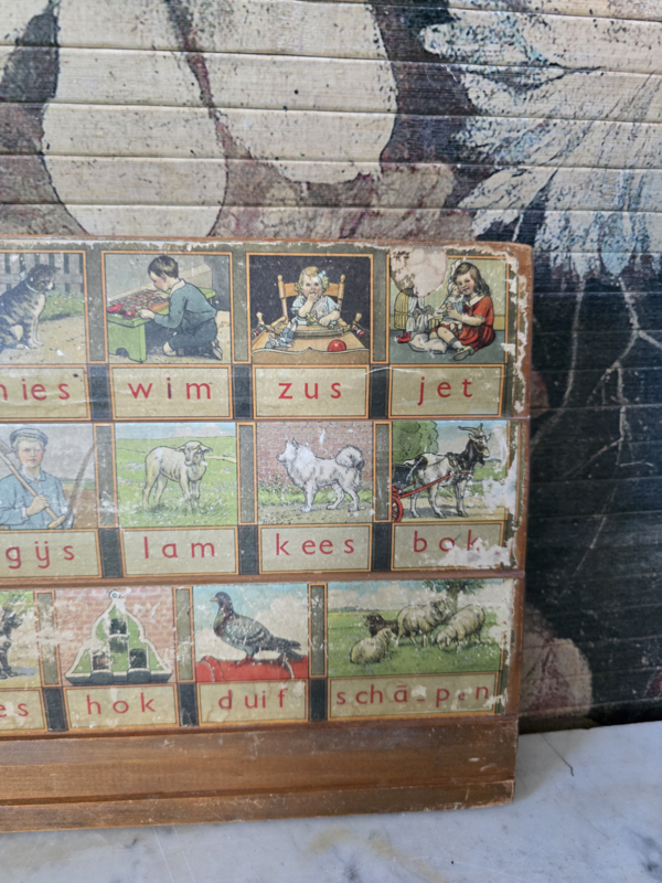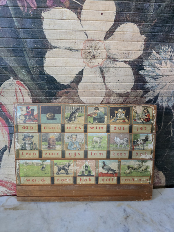 Oud leesplankje aap noot mies