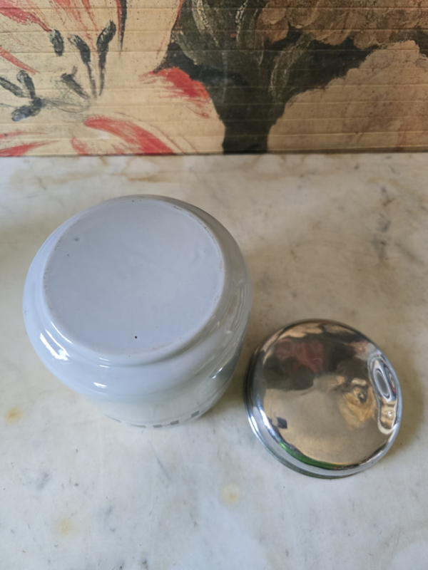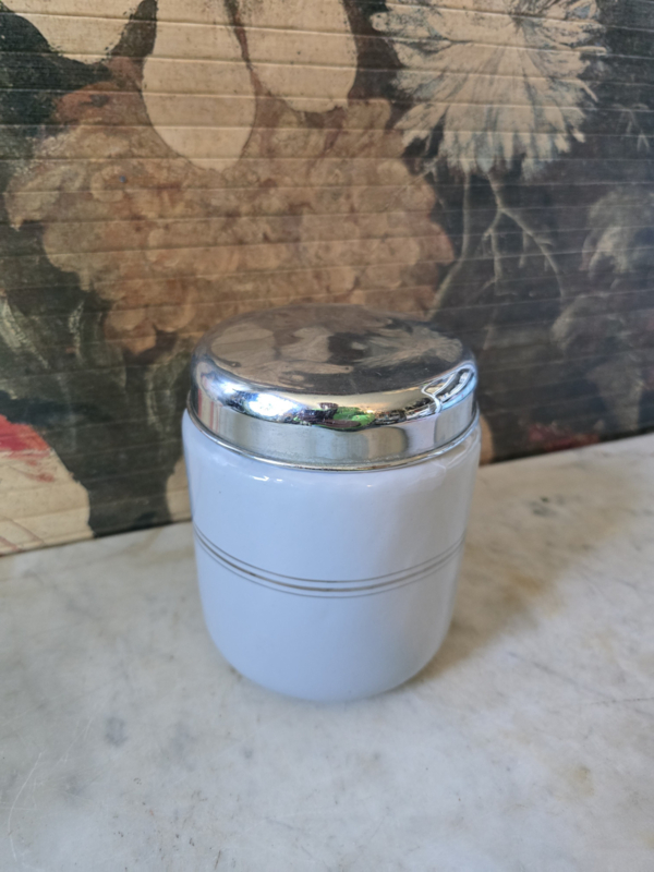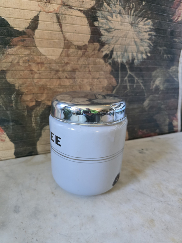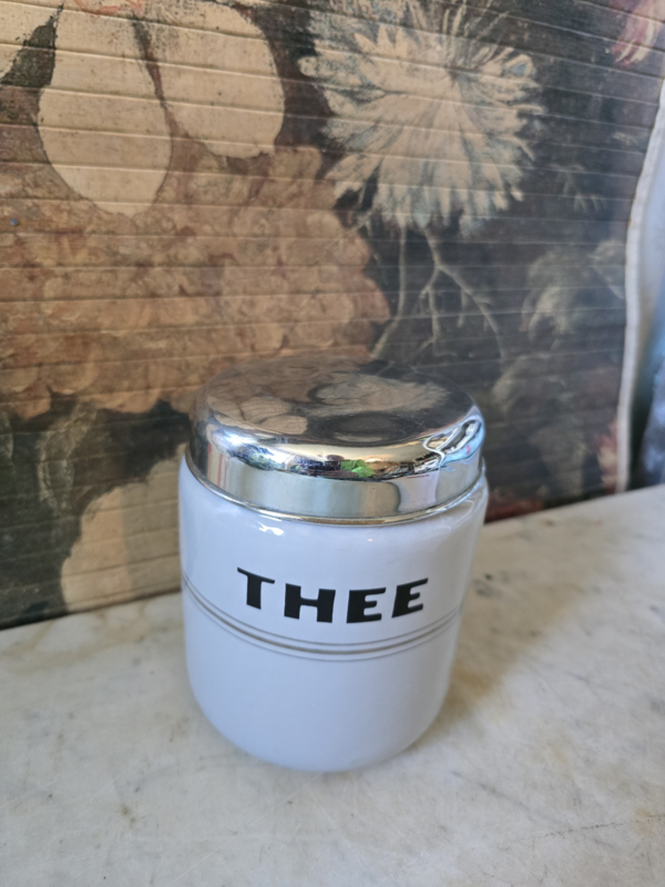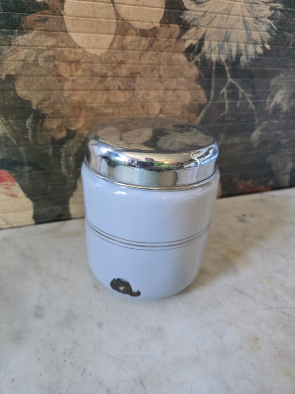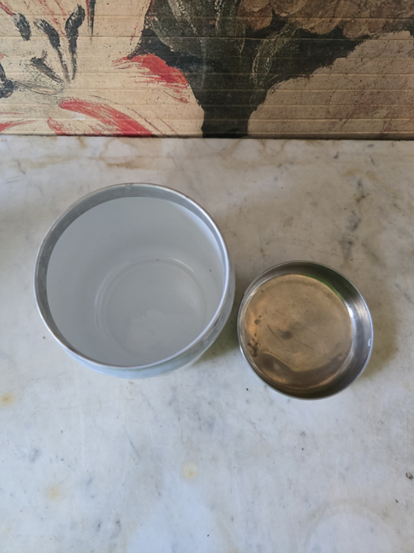Lichtgrijs emaille theebus