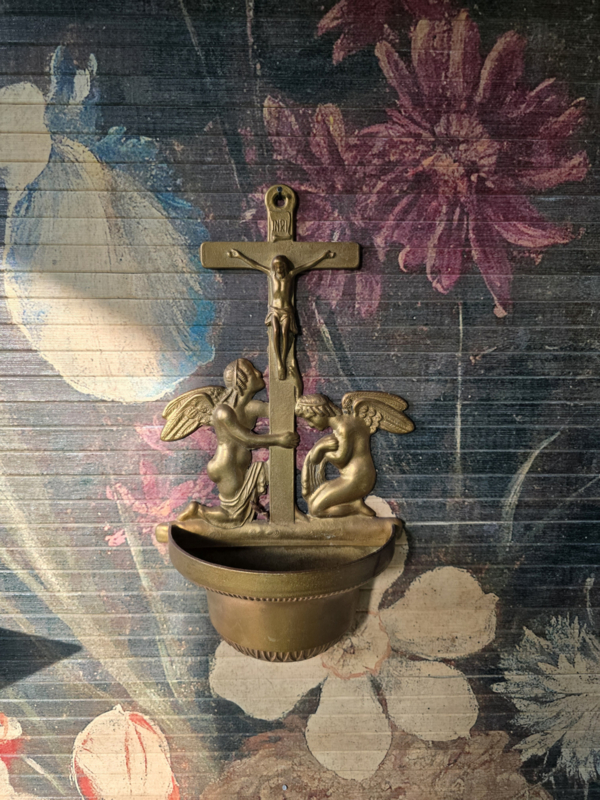 Antieke bolglas lijst MariaPrachtige bewerkte lijst lijkt van gips